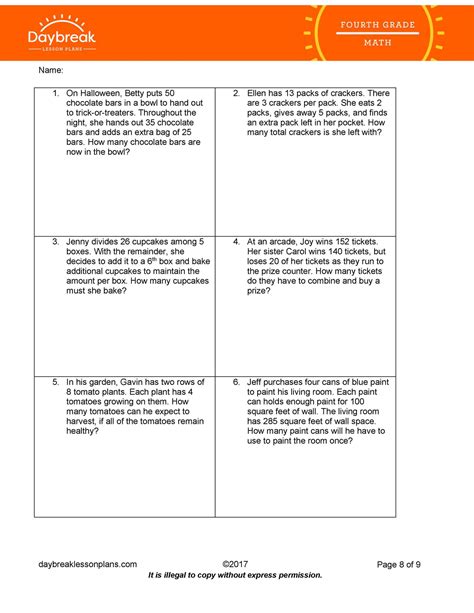Download PDF Online 4th grade math word problems lesson plans PDF PDF